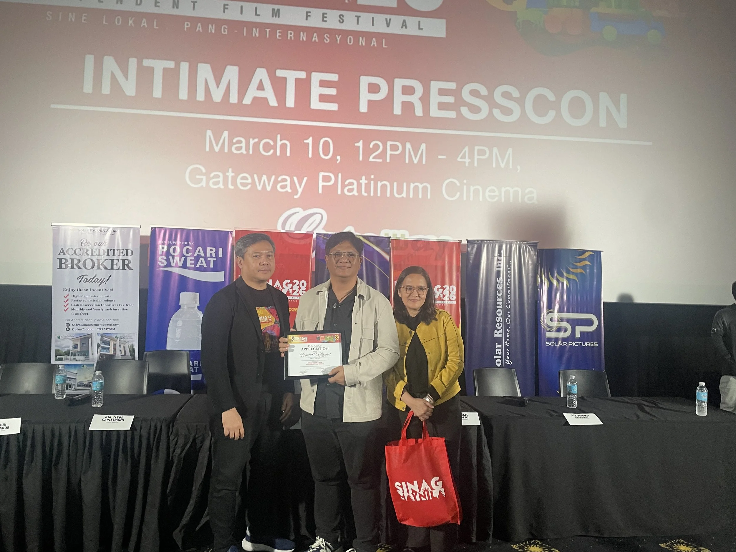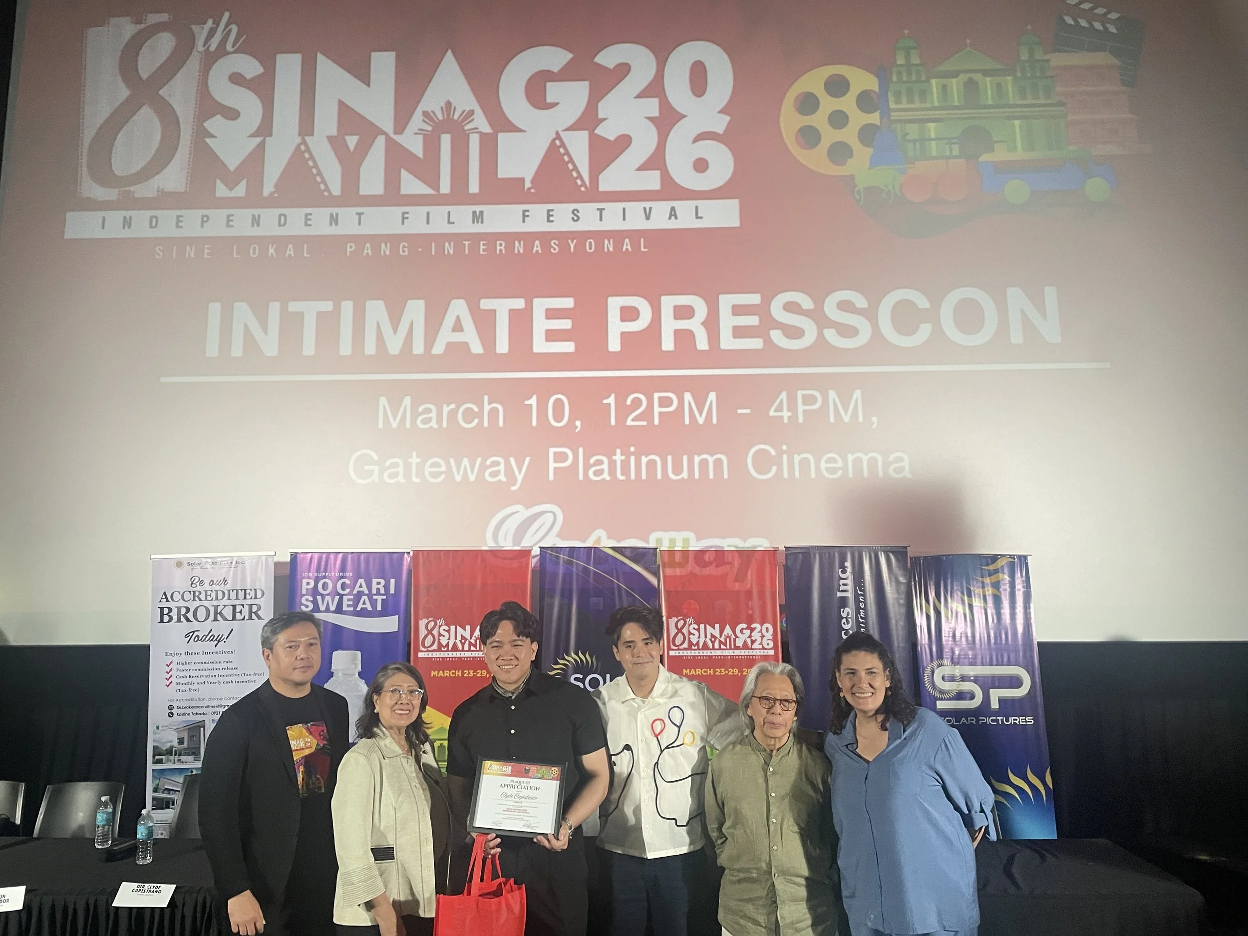 After announcing its selection online, the Sinag Maynila Independent Film Festival started 2026 early for its eighth edition, holding an invite-only press conference in Gateway Cineplex 18 in Cubao, Quezon City, with the narrative feature film selections' cast and filmmakers ahead of the festival's launch. The festival is set to run March 23 through 29 in selected cinemas across Metro Manila, with Gateway Cineplex 18 as the festival's official venue partner. The festival's other partner cinemas this year include Megaworld cinemas such as Eastwood Cinemas in Quezon City, Lucky Chinatown in Manila City, and Uptown Cinemas and Venice Cineplex in Taguig City. Detailed screening schedules are available on Sinag Maynila's social media pages.